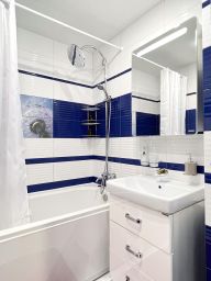 В квартирах есть всё необходимое для комфортного проживания: Wi-Fi + кабельное ТВ, утюг, гладильная доска, фен, стиральная машина, СВЧ, электрический чайник, вся необходимая посуда для приготовления еды, постельное белье и полотенца, комфортные спальные места.