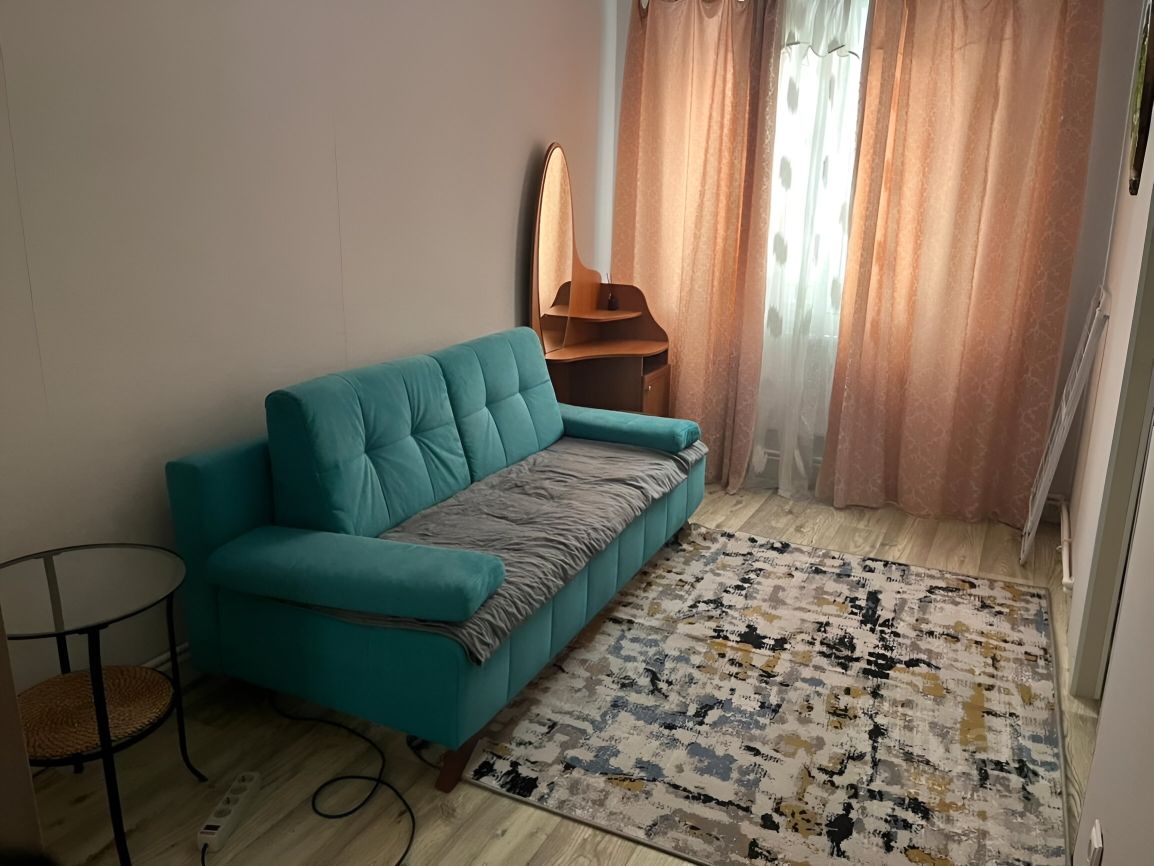 В квартире сделан ремонт, интерьер выглядит свежо и аккуратно. В комнате есть необходимая мебель: шкаф для одежды,стол,трельяж,уютный диван. Есть холодильник и стиральная машина. Санузел совмещенный,с ванной, а окна выходят во двор, поэтому в квартире всегда тихо и спокойно.