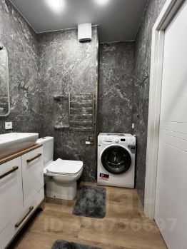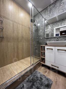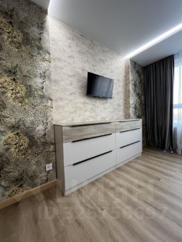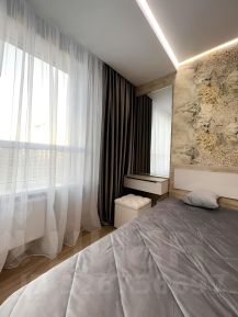 Квартира выполнена в дизайнерском стиле и полностью готова к проживанию. В комнате есть вся необходимая мебель, а на кухне установлена современная техника: кондиционер, холодильник, посудомоечная машина и телевизор. Также в наличии стиральная машина. Ванная комната оборудована душевой кабиной. Совмещённый санузел добавляет удобства.