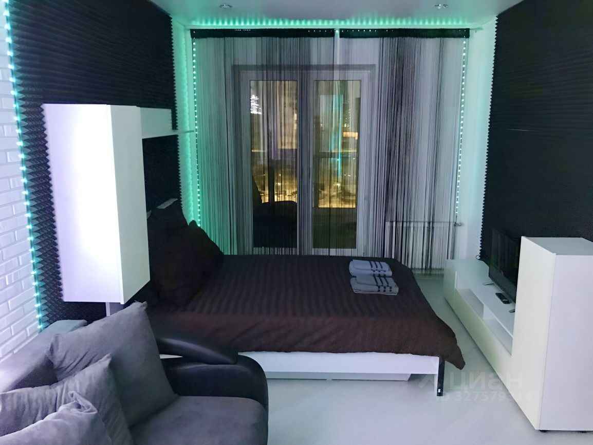 Комната: кровать с матрасом 140х200, 2 прикроватные тумбы, диван 140х200, встроенный шкаф, телевизор, несколько комплектов качественного (сатин) постельного белья и полотенец, натяжной потолок.