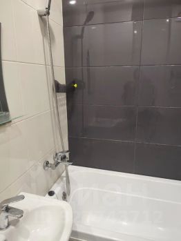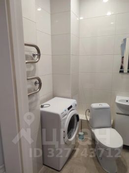 Санузел совмещённый, оформлен современной плиткой с подключённой стиральной машиной.