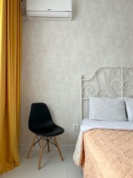 В апартаментах возможно размещение до 4 гостей, спальные места: двуспальная кровать и двуспальный диван. К услугам гостей: чистота и порядок, бесплатные уборки при длительном заселении; наличие необходимой бытовой техники: телевизор, холодильник, стиральная машина, электрический чайник, утюг, фен; набор посуды и столовых принадлежностей; бесплатный Wi-Fi + спутниковое TV.