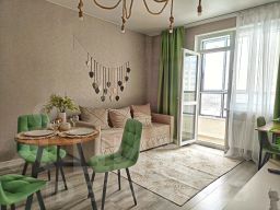 Уютная квартира рядом с ТЦ "Премьер". Интерьер квартиры продуман до мелочей: сочетание современного стиля и элементов скандинавского минимализма наполняют пространство теплом и уютом, создавая неповторимую домашнюю атмосферу. Квартира в шаговой близости от торгово-развлекательного центра "Премьер"