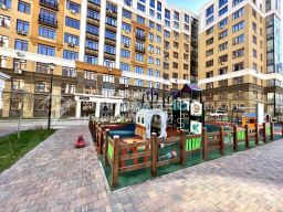 В доме закрытая территория под видео наблюдением и охранной. Во дворе большая детская площадка, спортивная.