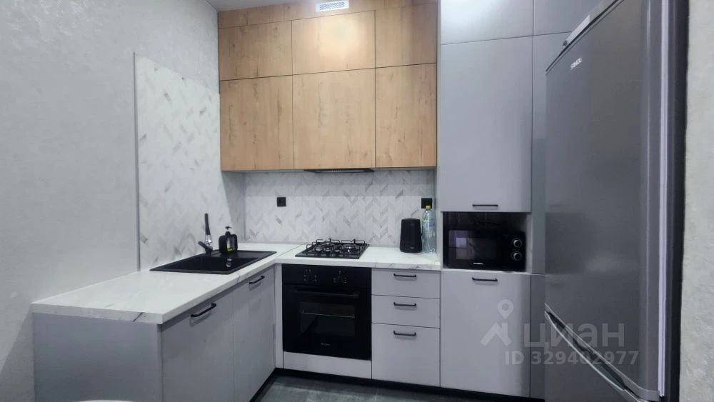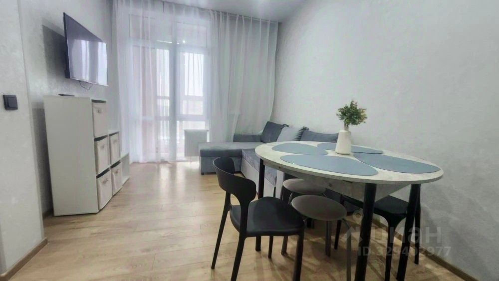 Квартира с качественным евроремонтом, готова к заселению. В комнате и на кухне установлена современная мебель, что обеспечивает комфортное проживание. В наличии вся необходимая бытовая техника: холодильник, стиральная машина и телевизор. Планировка включает совмещенный санузел с ванной, что удобно для ежедневного использования.