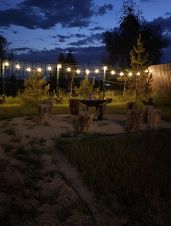 На территории мангальная зона, зона очага, большая терасса, всё отлично смотрится в кадре для съёмки фото и видео.