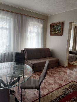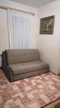 Интерьер выполнен в светлых тонах, создающих атмосферу уюта. Гостиная оборудована удобным диваном и обеденным столом с креслами. Кухня оснащена всем необходимым, включая плиту и микроволновую печь. Ванная комната совмещённая, с душевой кабиной.