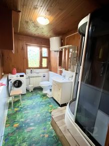 Санузел с душевой, холодная вода постоянно, горячая от бойлера, стиральная машина.