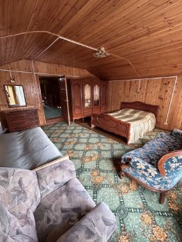 В доме 4 комнаты с двуспальным и односпальными кроватями.