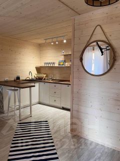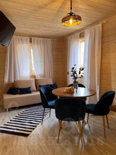 На территории 4 деревянных домика, выполненные в своей уникальной стилистике. Размещение зависит от конкретного домика. В каждом удобные спальные места, кондиционер, электрические обогреватели, водонагреватель на 100 л, Wi-Fi, Smart-TV, стиральная машина, сушилка для белья, утюг, гладильная доска, фен, кухня, оснащенная всем необходимым, постельное белье, полотенца, шампунь, гель для душа, мыло.