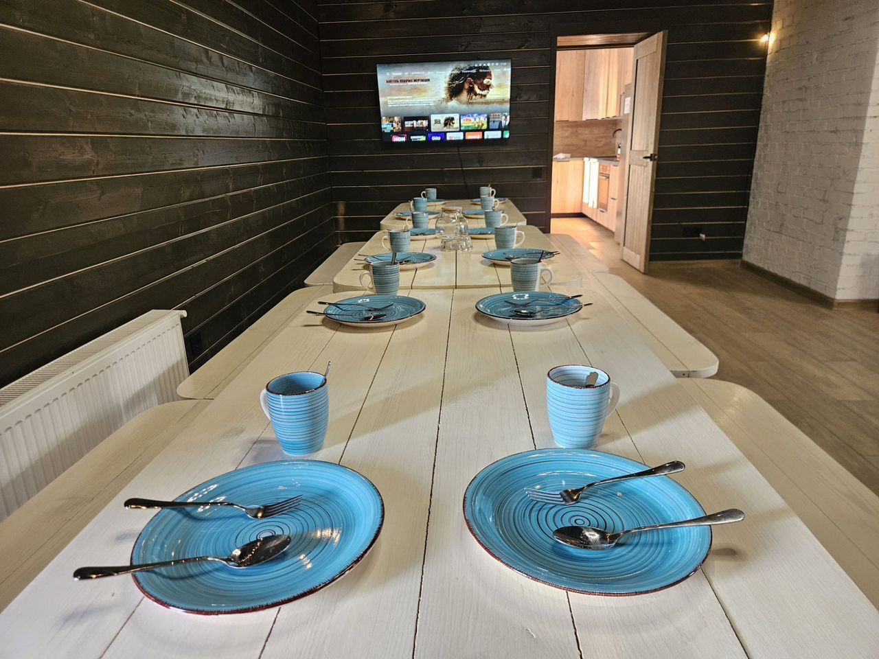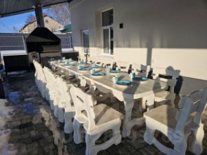 — Полностью оборудованная кухня: посудомоечная машина, варочная панель, духовка, Свчпечь и красивая посуда для торжественных мероприятий.