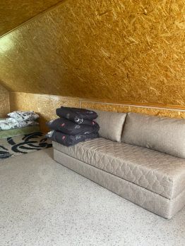 Дом в лесу на берегу водоемов с крытой беседкой, пляжем, волейбольной площадкой и мангалом. Подходит как для большой шумной компании, так и для тихого семейного отдыха. Спальных мест 14. Вокруг пешие тропы для прогулок по лесу, грибные места, рыбалка (за отдельную плату). Есть возможность шуметь и слушать музыку без ограничения по времени. Также на территории находится дом с террасой на 6 человек, крытый навес для мероприятий до 50 человек. Так как дом находится на территории леса, есть проблемы со связью. Часть дороги до дома — насыпная щебенка.