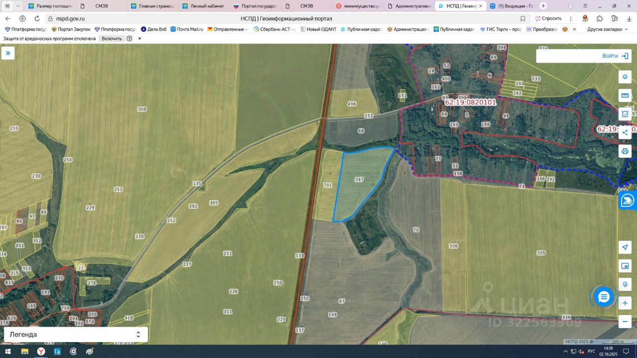 Земельный участок с кадастровым номером 62:19:1360201:347 площадь 116400 по адресу Рязанская область, р-н Скопинский, Успенское сельское поселение, юго-западнее с Николо-Скопин