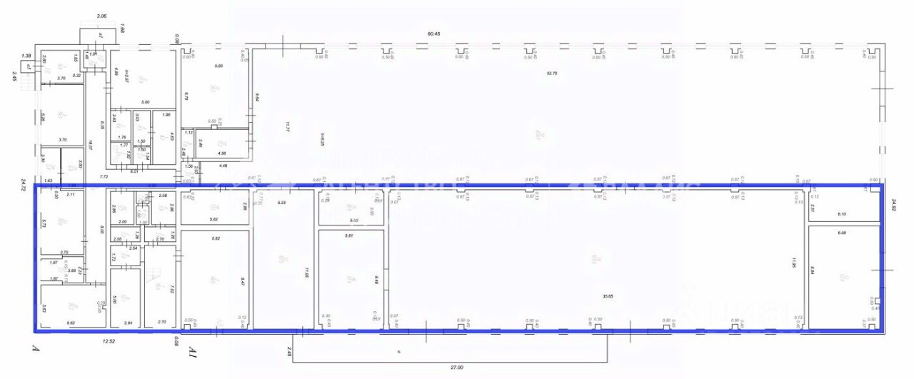 Часть здания площадью 1 230 кв.м. Ширина пролета 12 метров. Высота потолка 6 м.