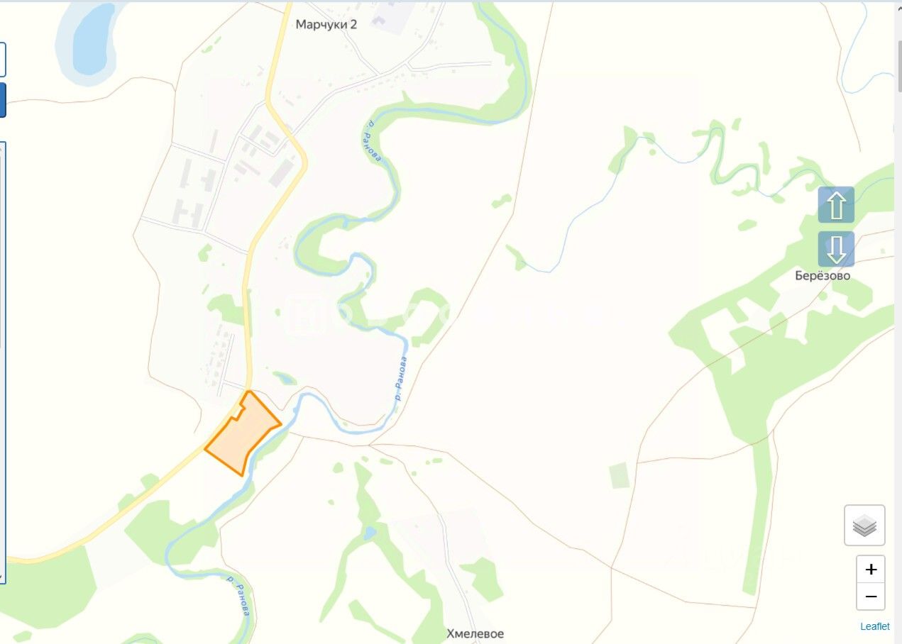На участке есть разные строения (механическая мастерская, весовая, склады, зернохранилища, коровники). Рядом река Ранова.