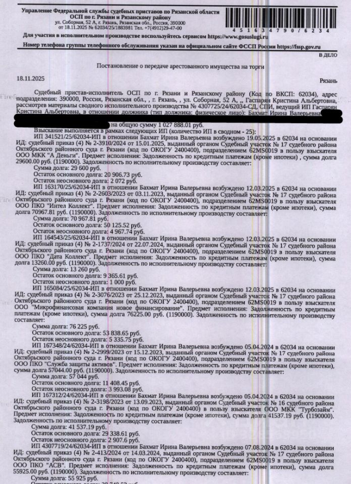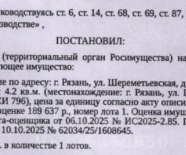 Помещение, назначение: нежилое, наименование: помещение, площадь 4,2 кв.м, кадастровый номер 62:29:0110006:1180, местоположение: Рязанская область, г. Рязань, ул. Шереметьевская, д. 6, корп. 1, пом. Н104. Взыскатель: ООО ПКО "АСВ", ООО ПКО "Дата Коллект" и др. Начальная цена: 189 637 (Сто восемьдесят девять тысяч шестьсот тридцать семь) руб. 00 коп., без НДС. Задаток: 90 000 (Девяносто тысяч) руб. 00 коп. Шаг аукциона 1%: 1 896 (Одна тысяча восемьсот девяносто шесть) руб. 37 коп.
