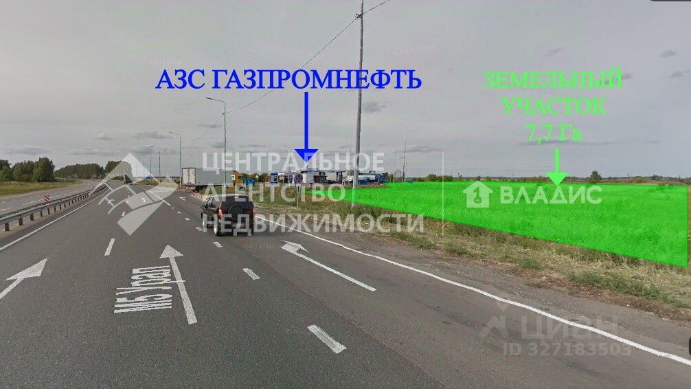 Участок расположен на перекрестке. Можно организовать заезд как с федеральной автодороги, так и с примыкающей.