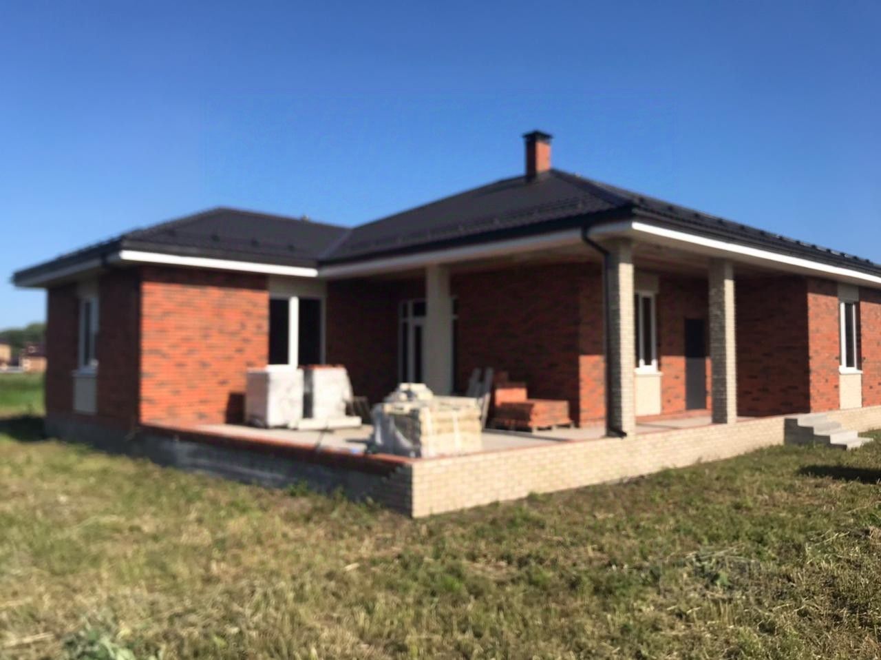 Продается одноэтажный коттедж, построенный в современном стиле, с открытой и закрытой верандой, с колоннами и вставками из декоративно-колотого кирпича, с высокими потолками и окнами, с просторными планировками. Фундамент буронабивные сваи с ростверком. Утепленные бетонные полы. Стены облицовочный кирпич. Внутренние стены керамический теплоблок (440 мм), перегородки теплоблок (250 мм), красный полнотелый кирпич (250 мм), ПГП (80 мм). Высота потолков 3,11 м. Крыша металлочерепица. Водосточная система, снегозадержание. Окна профиль Rehau (70 мм), остекление мультифункциональный стеклопакет, входная витражная группа.