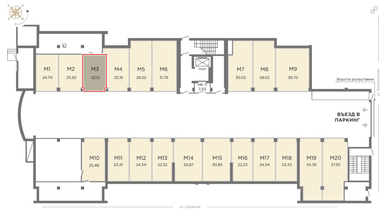 Площадь 22м². Тёплый подземный паркинг, никакого снега и чужих машин на вашем месте.