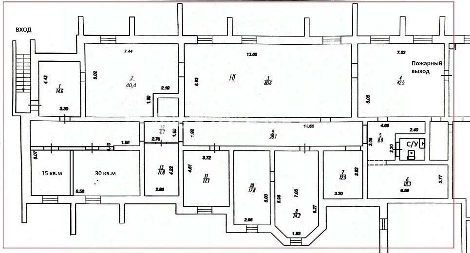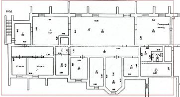 Планировка кабинетного типа с окнами. Два входа основной и пожарный, потолки 3,5 м.