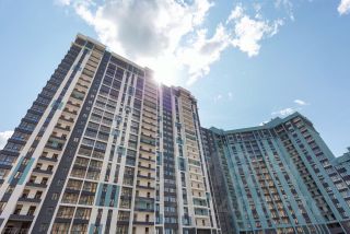 Здесь планировка с кухней-гостиной, отдельной спальней и гардеробной. Потолки выше, чем обычно, окна почти во всю стену — комната наполнена светом и не давит.
