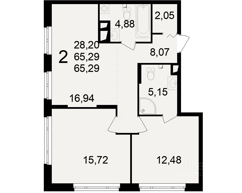 Общая площадь65,29 м²