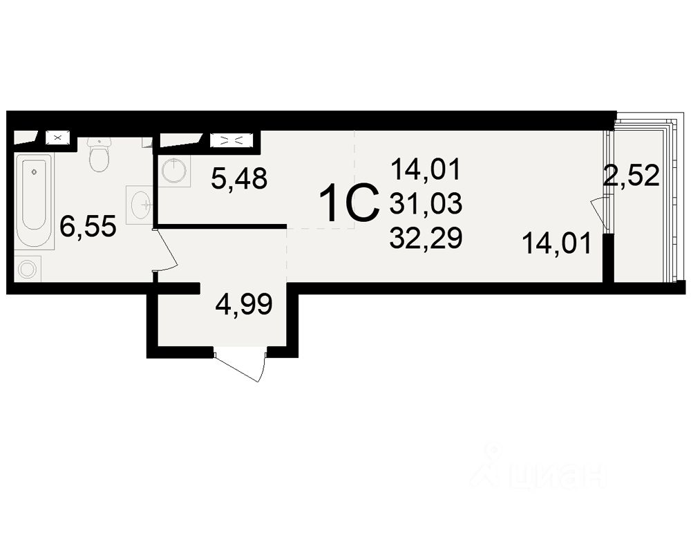 Общая площадь31,03 м²