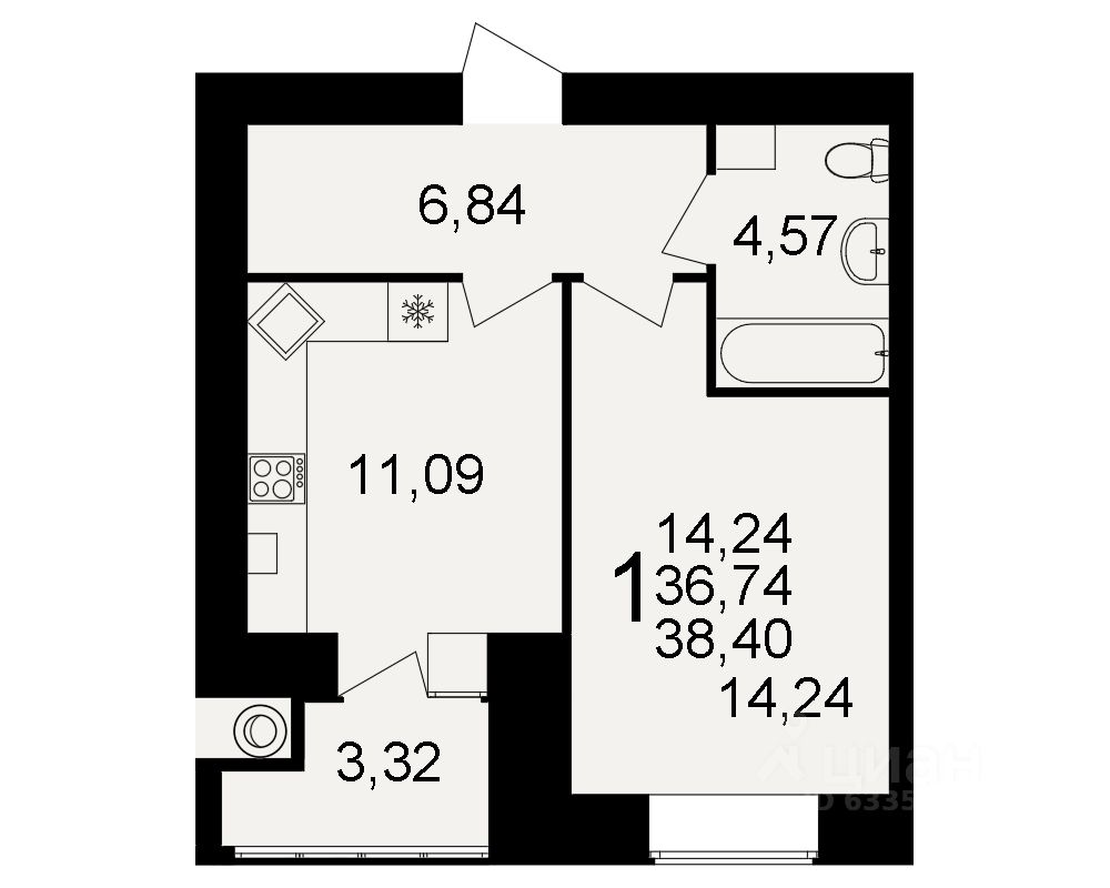 Общая площадь36,74 м²