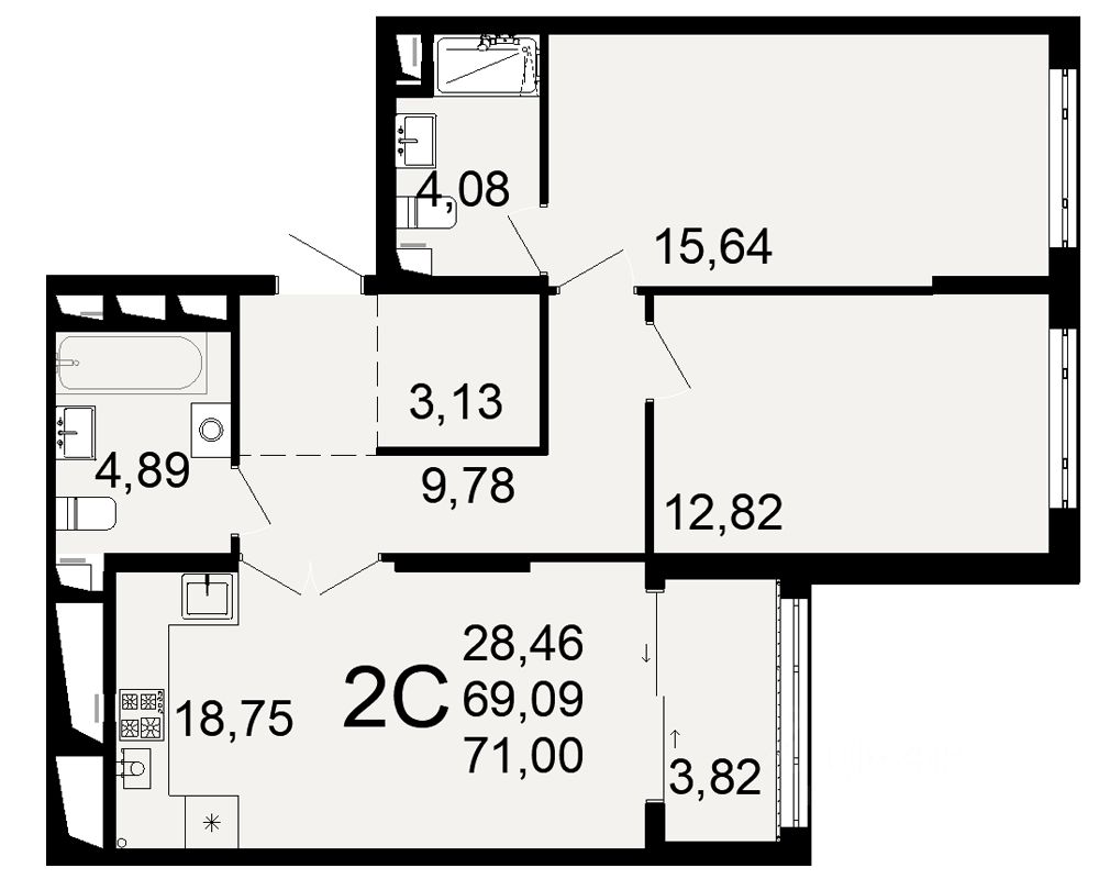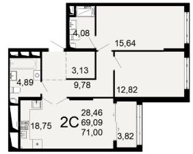 Общая площадь69,09 м²