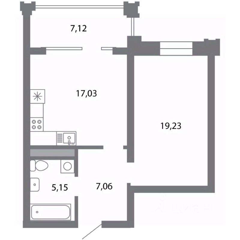 Продаётся 1-комнатная квартира в сданном доме (корпус 2), срок сдачи: II-кв. 2025, общей площадью 52.03 кв.м., на 3 этаже.