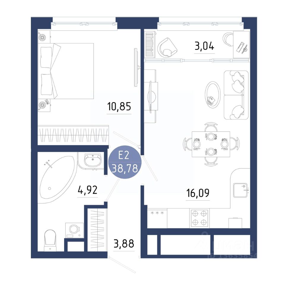 Общая площадь38,78 м²
