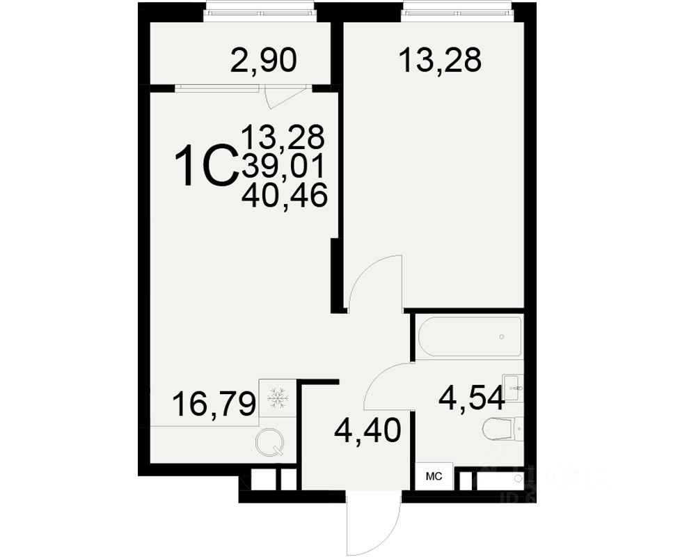Общая площадь39,01 м²