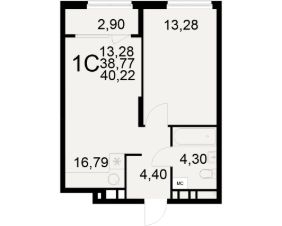 Общая площадь38,77 м²