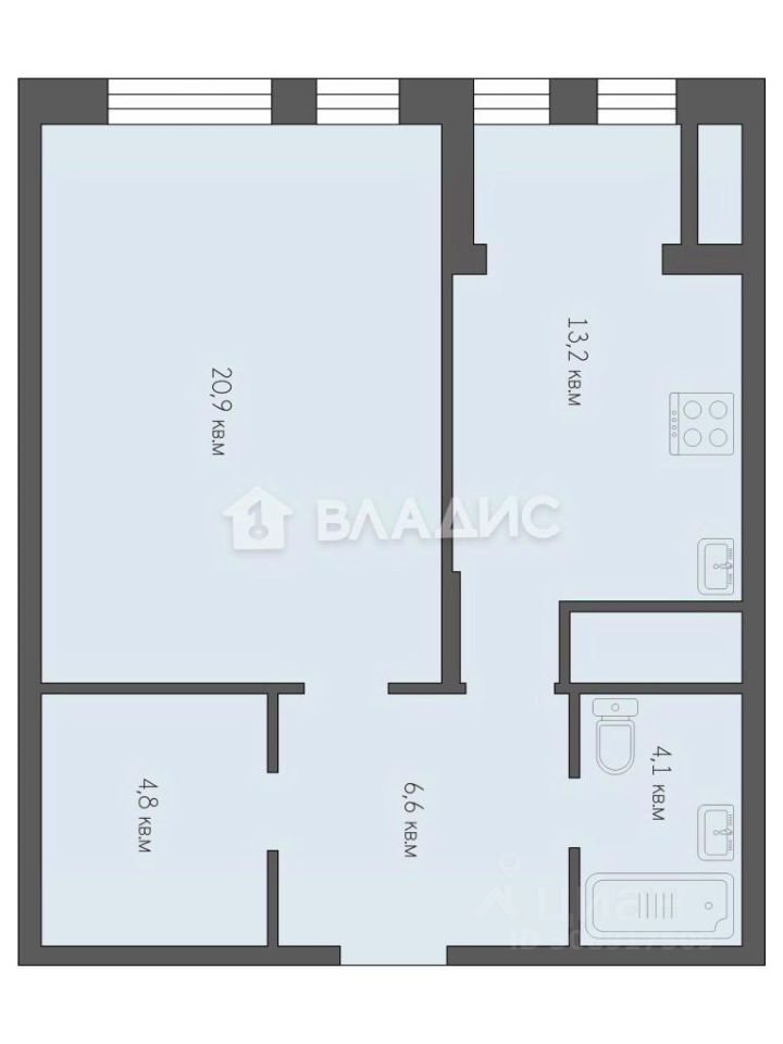 -Площадь (50 м²) позволяет реализовать любую концепцию, от просторной студии до квартиры с выделенной спальней.
