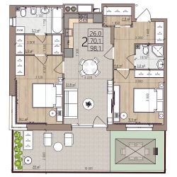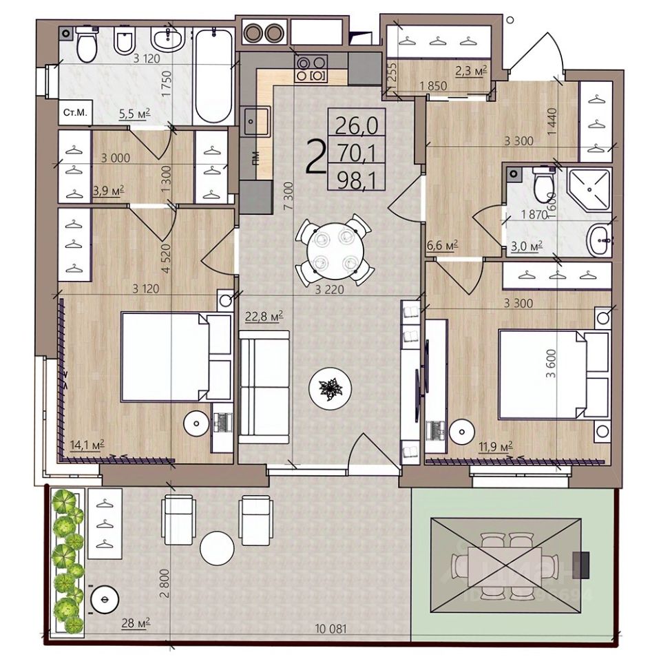 Квартира с собственной террасой! Вы покупаете не только жильё, но и собственный зеленый дворик для барбекю, детского бассейна, качелей, тренажёрного зала, летней оранжереи и так далее - на ваш вкус.