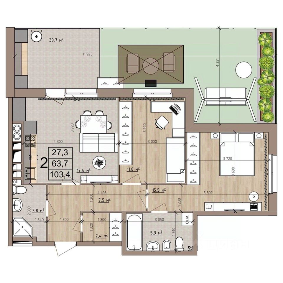 Квартира с собственной террасой! Вы покупаете не только жильё, но и собственный зеленый дворик для барбекю, детского бассейна, качелей, тренажёрного зала, летней оранжереи и так далее - на ваш вкус.