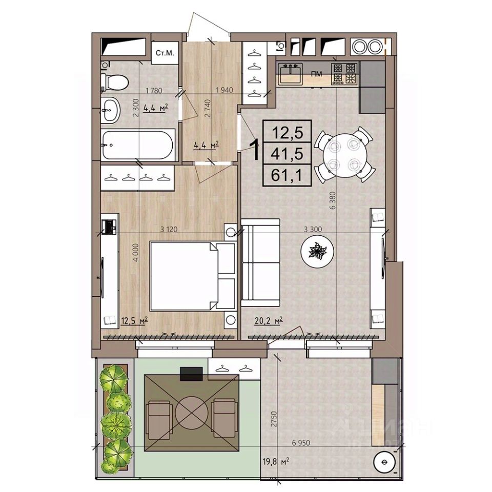 Общая площадь61,1 м²