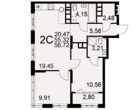 Общая площадь55,32 м²