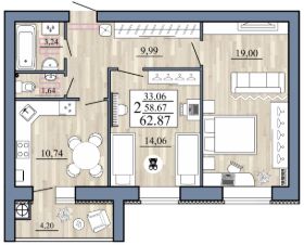2-х комнатная квартира в жилом комплексе СТРИЖИ СРОК СДАЧИ ДОМА - 2 квартал 2026 года. Классическую двухкомнатная квартира площадью 62,87 кв.м, идеально подходящая для семейного проживания. Квартира располагает отдельной кухней с удобной рабочей зоной, что позволяет с комфортом готовить и проводить время за семейными ужинами. Большая мастер-спальня станет уединённым уголком для отдыха и расслабления, а детская комната обеспечит уютное пространство для ваших детей. Классическая планировка квартиры создает ощущение простора и функциональности, что делает это жилье идеальным вариантом для комфортной жизни. Не упустите шанс стать владельцем этого уютного и практичного жилья! В наших квартирах вам не захочется что-то менять или переделывать. Мы позаботились о том, чтобы все было на высшем уровне, а ремонт не отнял много времени и средств. Вот основные преимущества: Отделка "White Box Premium": ЖК Стрижи представляет собой первый в Рязанской области жилой комплекс, где во всём комплексе реализована премиальная предчистовая отделка White Box Premium. Все квартиры передаются с идеально подготовленными поверхностями, готовыми к финишной отделке: стены выровнены, оштукатурены белоснежным цветом и идеально подходят для поклейки обоев любой плотности (кроме самых тонких). В санузлах и на лоджиях применена суперстойкая цементная штукатурка! Также в комплект входит надежная металлическая дверь. Окна премиум-класса: Современные окна обеспечивают отличную тепло- и звукоизоляцию, создавая комфортные условия внутри квартиры и защищая от внешних шумов. Индивидуальное отопление: Каждая квартира нашего дома оборудована индивидуальным газовым котлом. Вы можете создать комфортную температуру в любое время года, независимо от погодных условий. Приточная вентиляция в каждой комнате: Обеспечивает свежий воздух и поддерживает оптимальный микроклимат, что особенно важно для вашего здоровья и благополучия. Теплые полы: Во входной зоне коридора, ванных комнатах и санузлах установлены тёплые полы. Система очистки воды: Гарантирует вам доступ к чистой и безопасной воде, что сделает повседневную жизнь более комфортной и здоровой. Выбирая наши квартиры, вы получаете пространство, в котором все продумано до мелочей для вашего комфорта и удобства! ЖК СТРИЖИ - это современный десятиэтажный кирпичный дом, который станет настоящим украшением вашего района. Архитектурное оформление в японском стиле создает уникальную атмосферу гармонии и уюта, идеально сочетающуюся с окружающей природой. Жилой комплекс СТРИЖИ расположен в экологически чистом и динамично развивающемся районе города Рыбное. Здесь предусмотрено всё необходимое для комфортной жизни: Ландшафтный дизайн: Эстетически продуманные территории с благоустроенными дорожками и украшающими насаждениями. Зеленые зоны для отдыха и прогулок, где каждый сможет насладиться свежим воздухом. Игровые и спортивные зоны: Оригинальные площадки для детей и современные оборудованные места для занятий спортом. Оборудование Work-o