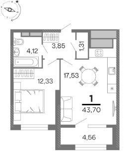 Продаётся 1-комнатная квартира в строящемся доме (Дом 4), срок сдачи: IV-кв. 2029, общей площадью 43.7 кв.м., на 14 этаже. Новый современный жилой комплекс комфорт-класса с прилегающей парковой территорией и уникальной архитектурой. Жилой комплекс гармонирует с зеленой зоной - район застройки расположен в непосредственной близости от березовой рощи и парка им. Гагарина, площадью в 130 тысяч м2. Локация дома располагает к занятиям спортом на свежем воздухе и приятным вечерним прогулкам в тени деревьев.