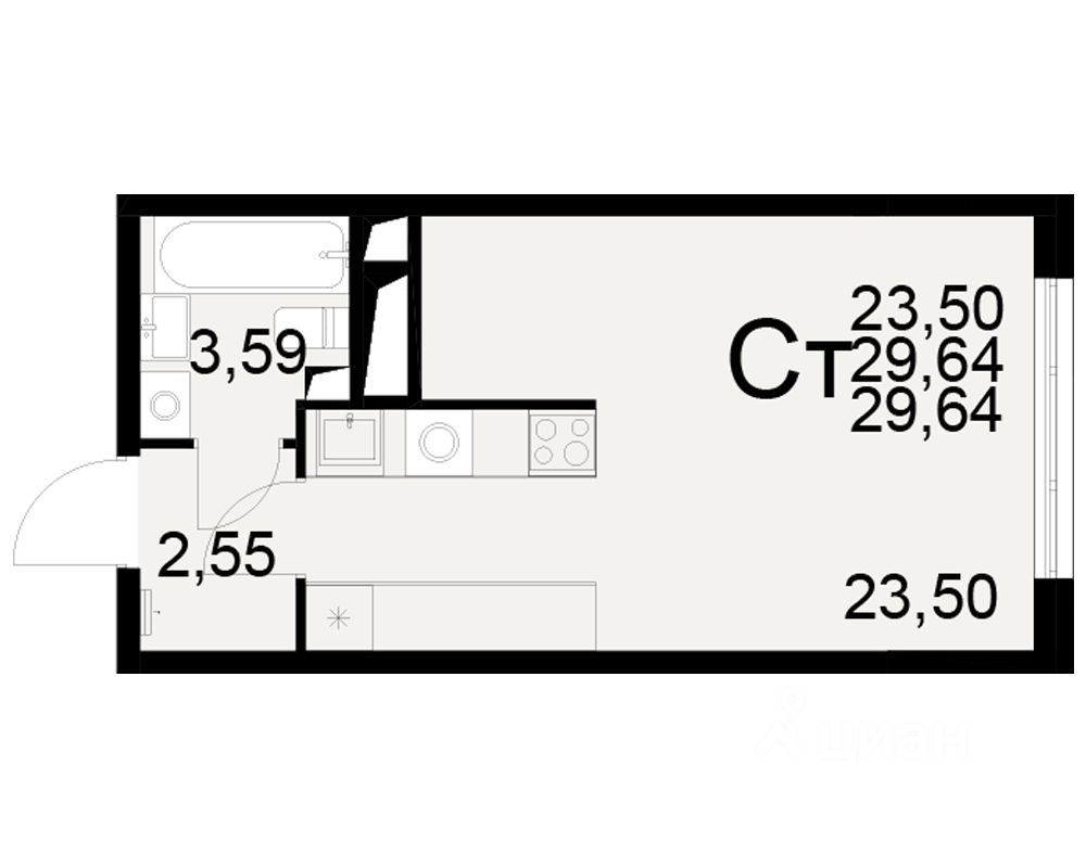 Общая площадь29,64 м²