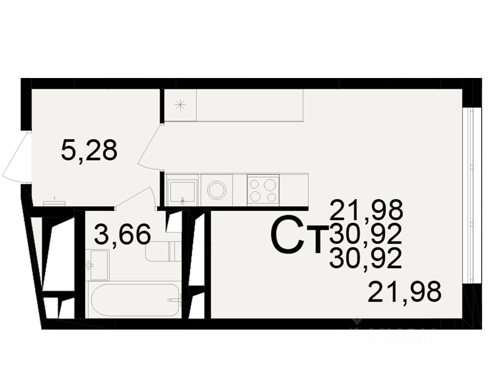 Общая площадь30,92 м²