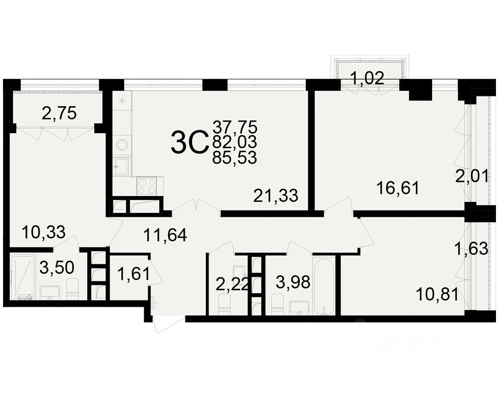 Общая площадь82,03 м²
