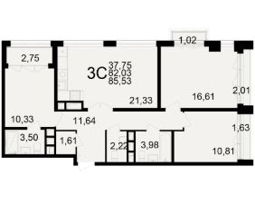 Площадь кухни21,3 м²