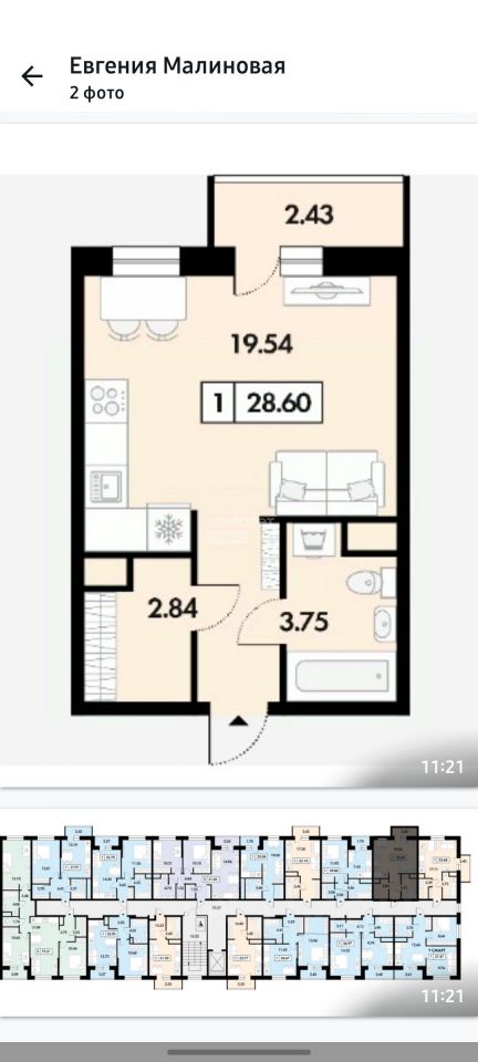 В продаже отличная однокомнатная квартира, по самой низкой цене среди аналогов.