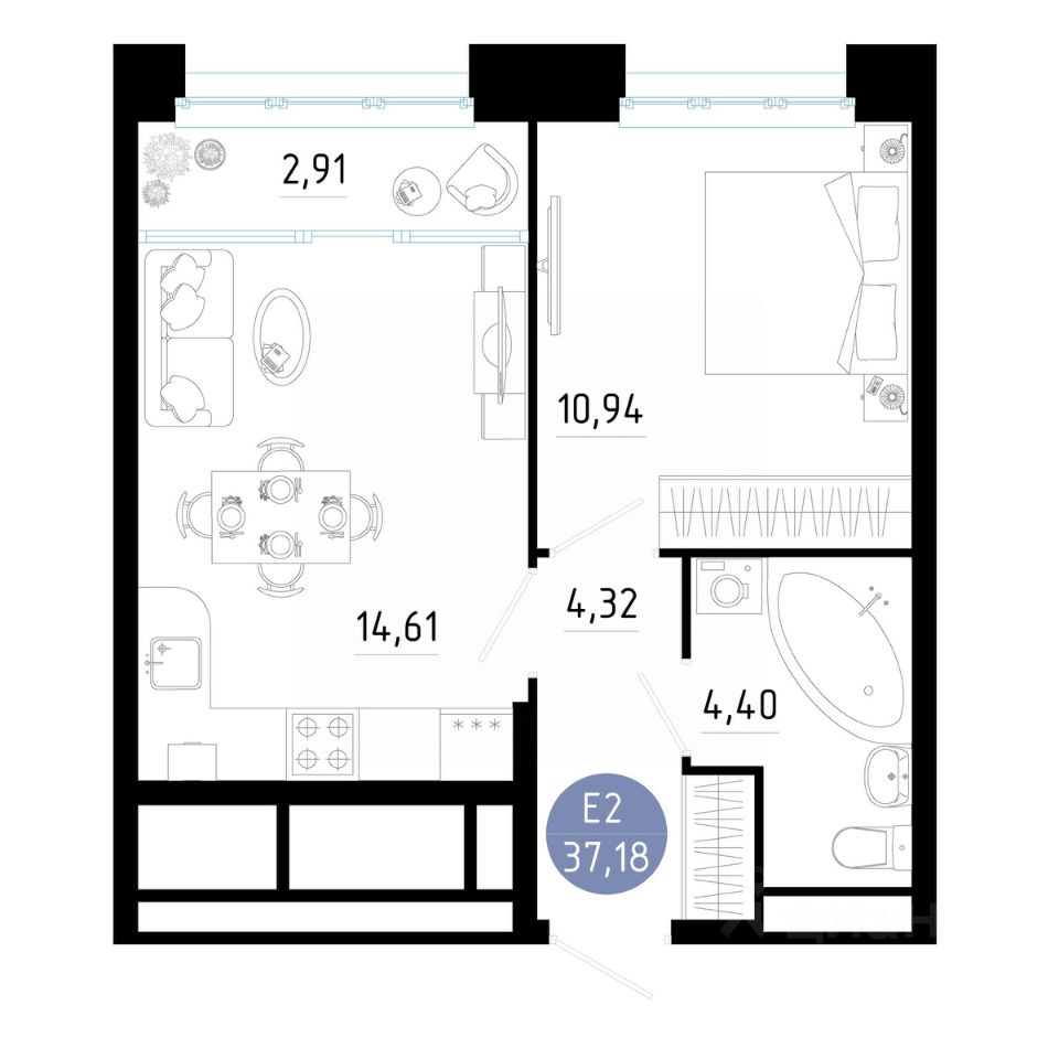 Общая площадь37,18 м²
