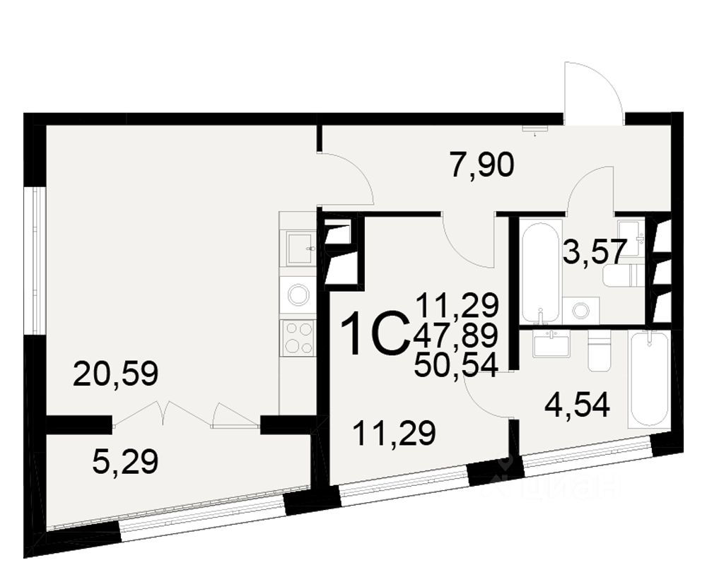 Общая площадь47,89 м²