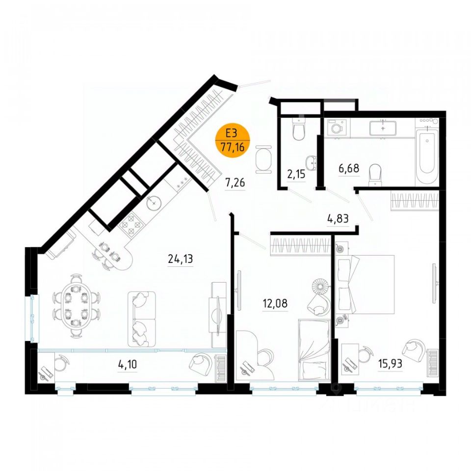 Арт. 60416239 Продается отличная Евро -3. Квартира в доме ЖК ЦЕНТРАЛЬНЫЙ (Рядом с ТРЦ Премьер)!
