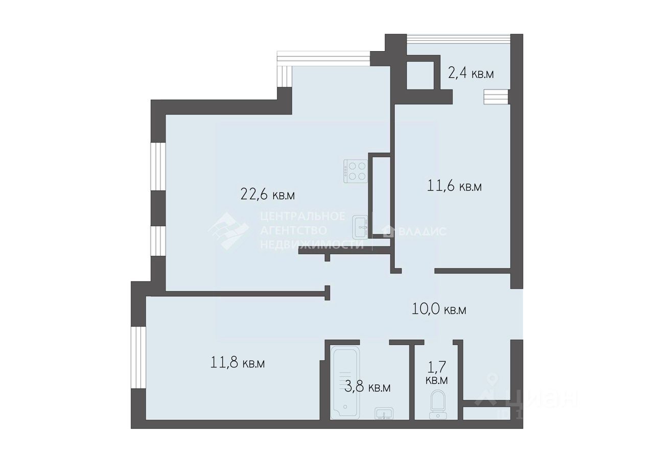 Общая площадь — 61,2 кв. м,