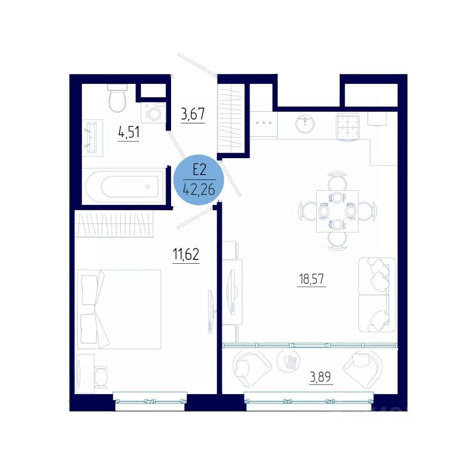 Общая площадь42,26 м²